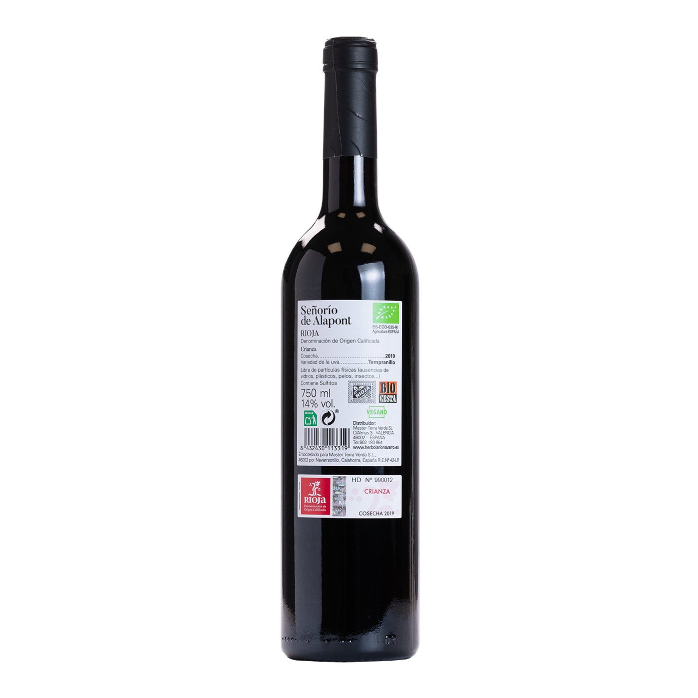 El Vino Tinto Crianza Señorío de Alapont es un vino tinto con Denominación de Origen Calificada (DOCa) Rioja, conocida por la excelencia de sus vinos. Este vino se elabora principalmente a partir de la variedad de uva Tempranillo Tinta, que se cultiva de manera ecológica, siguiendo prácticas respetuosas con el medio ambiente. La categoría Crianza indica que este vino ha pasado un período de envejecimiento en barricas de roble y en botella antes de su comercialización, lo que le confiere una mayor complejidad y madurez en comparación con los vinos jóvenes.