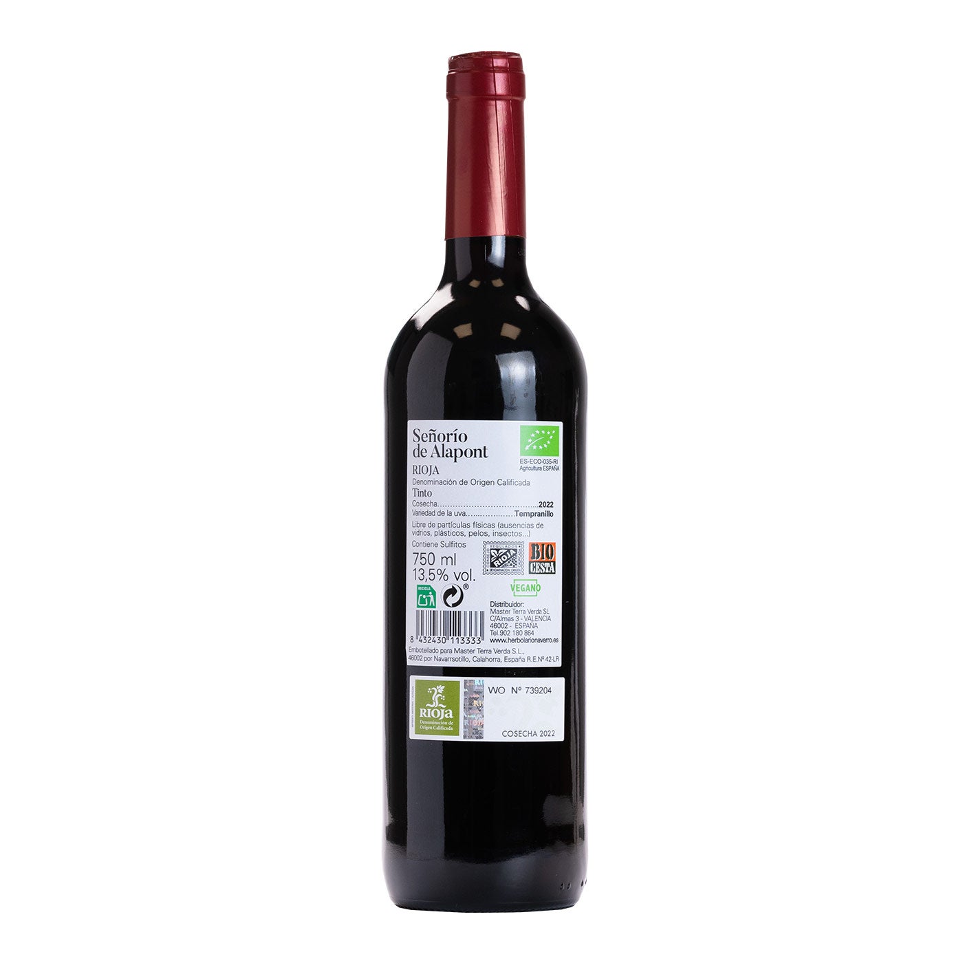 El Vino Tinto Joven de Señorío de Alapont es un vino tinto que proviene de la prestigiosa Denominación de Origen Calificada (DOCa) Rioja. Está elaborado con la variedad de uva Tempranillo, la cual se cultiva de manera ecológica, lo que implica prácticas respetuosas con el medio ambiente. Los vinos tintos jóvenes, como este, suelen ser apreciados por su frescura y carácter frutal, y se consumen en su juventud sin un largo envejecimiento en barricas de roble.