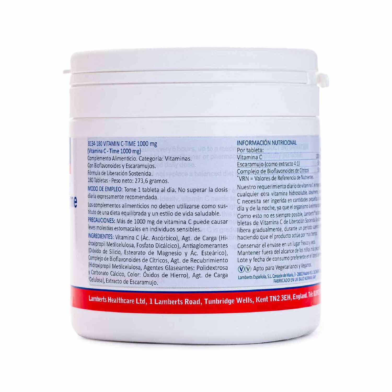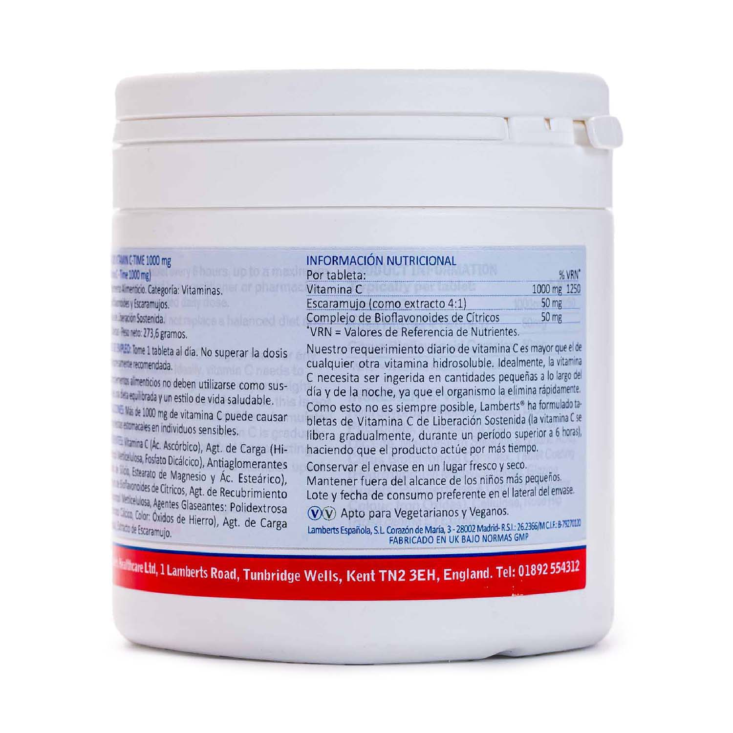 Vitamina C Bioflavonoides y Escaramujo 180 comprimidos Lamberts