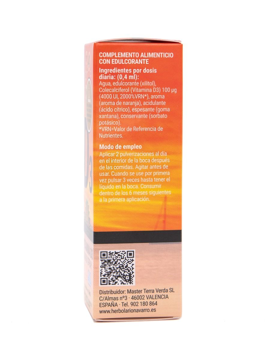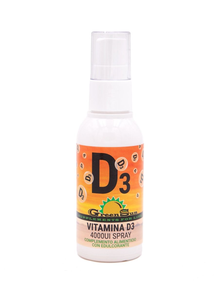 Vitamina D3 en Spray de Green Sun. Complemento alimenticio de Vitamina D3 de 4000 UI con una práctica dosificación en spray. La Vitamina D contribuye al mantenimiento normal de los huesos y al funcionamiento normal del sistema inmunitario.