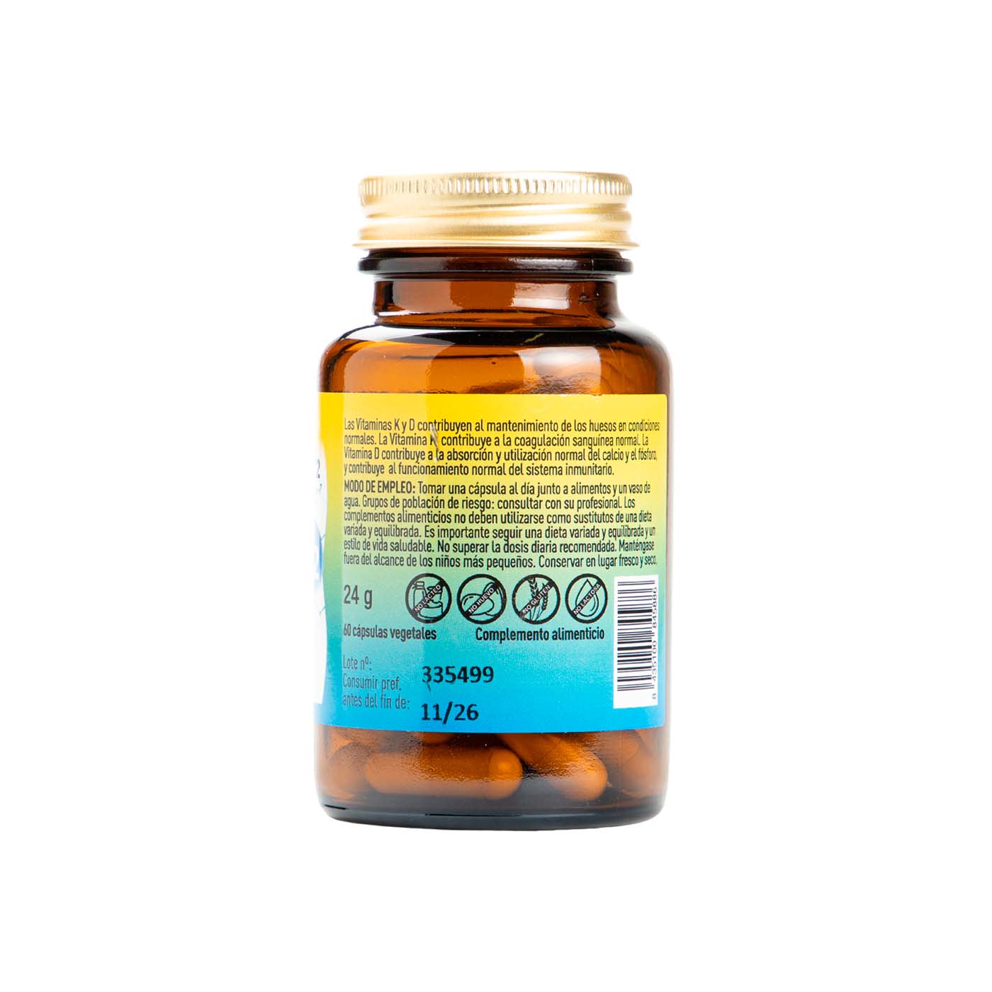 Por 1 cápsula vegetal: Vitamina D3 (100 mcg), Vitamina K2 (menaquinona-7)(100 mcg).