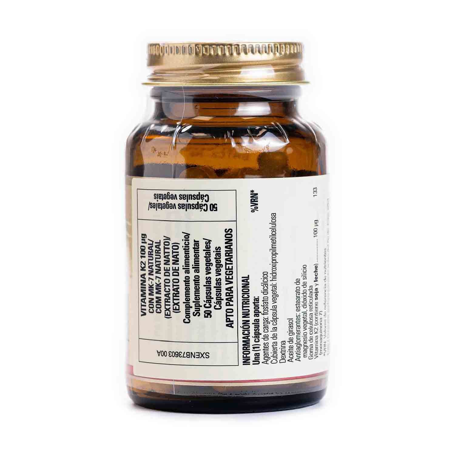 Vitamina K2 100 mcg (menaquinona 7) 50 cápsulas Solgar