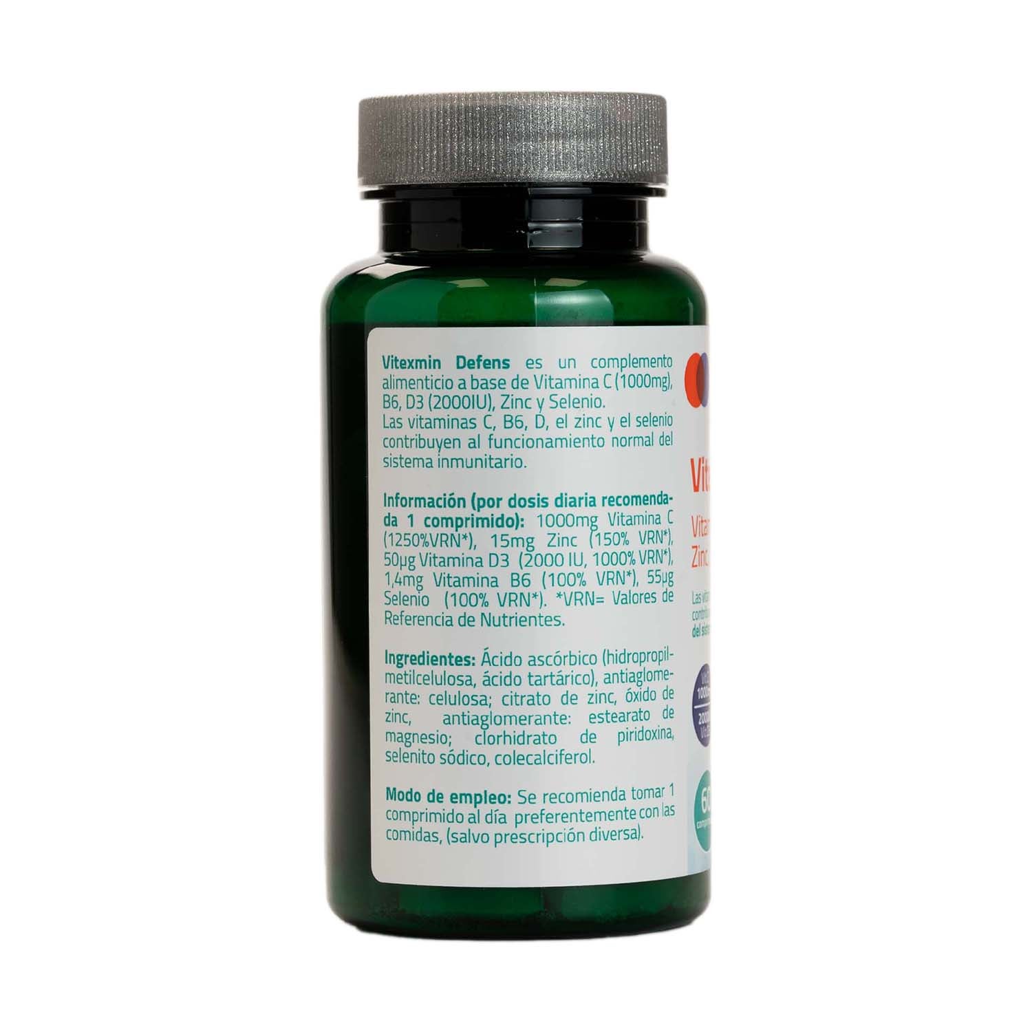 Vitexmin Defens de Sakai se ha desarrollado para aportar una protección total al organismo a través de un complejo de vitaminas y minerales en alta concentración: 1000mg de Vitamina C, 2000IU Vitamina D3, Zinc y un aporte adicional de Vitamina B6 y Selenio.