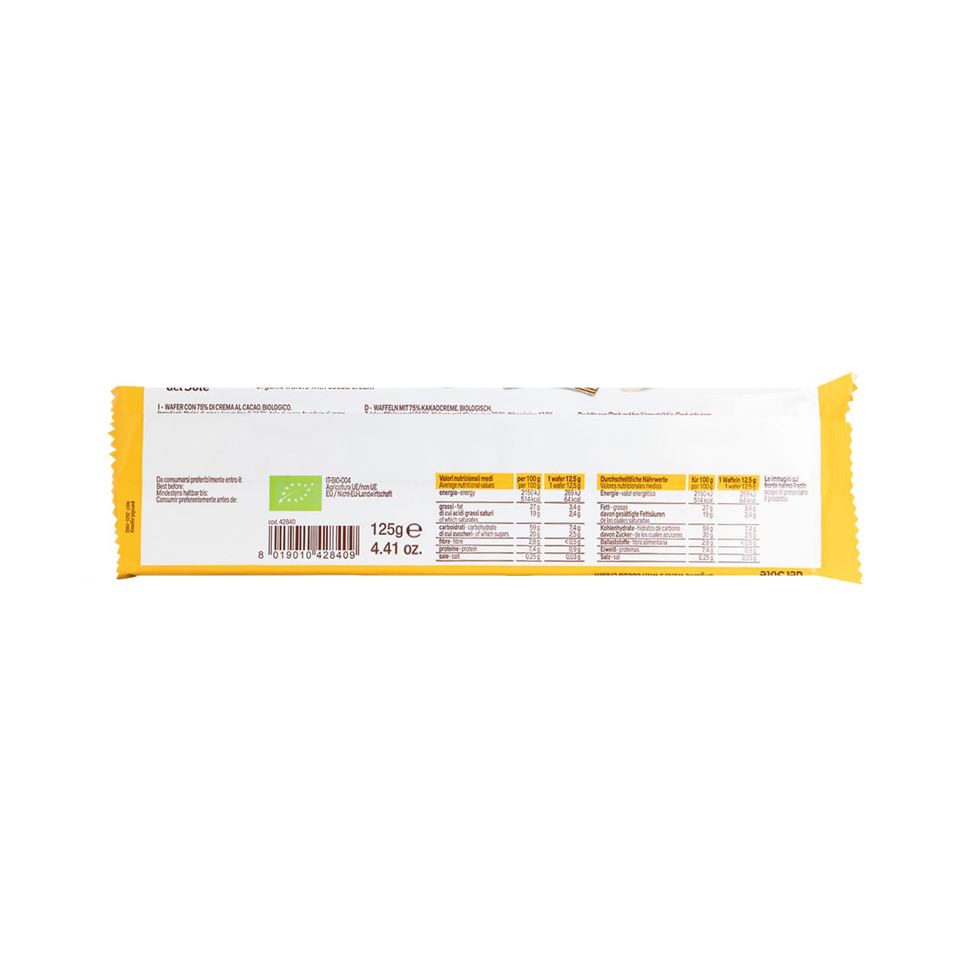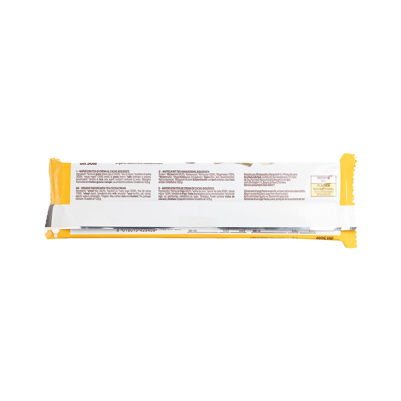 Crujiente, cremoso y ecológico. Disfruta cada bocado del delicioso Wafer de Cacao La Città del Sole.